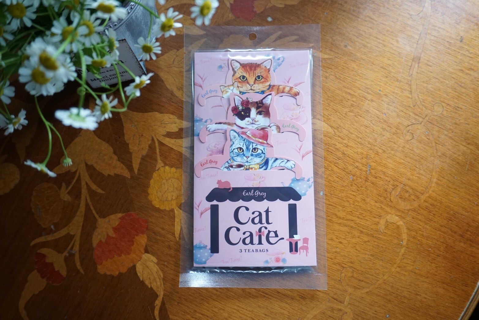 カップにかけるネコ型ティーバッグ。
